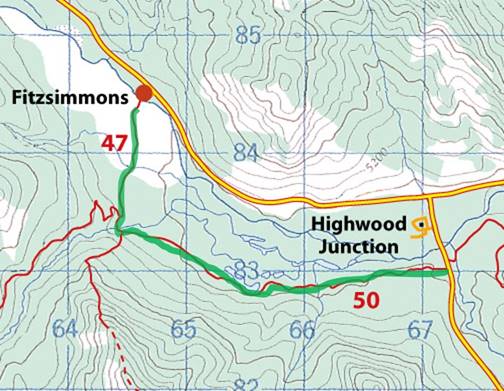 Return to highway on the trail you came in on. |